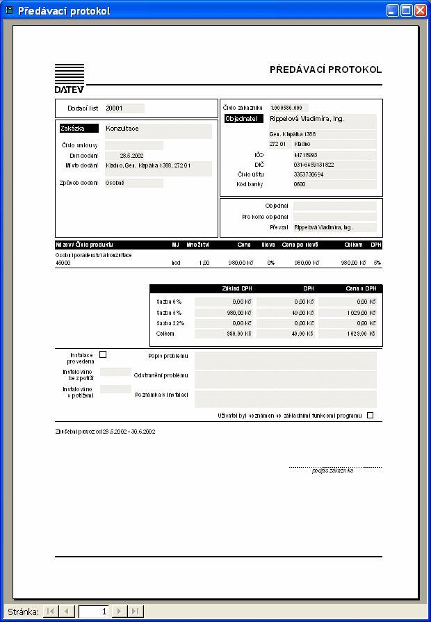 a vystavování dodacích listů.