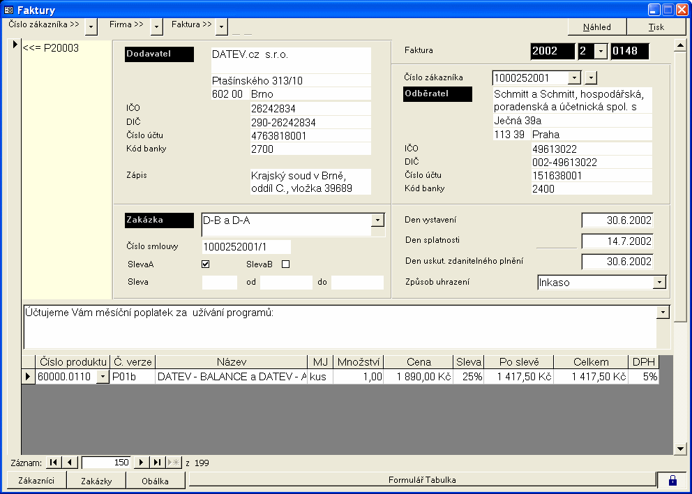 Formulář Objednávky slouží k evidenci závazných objednávek
